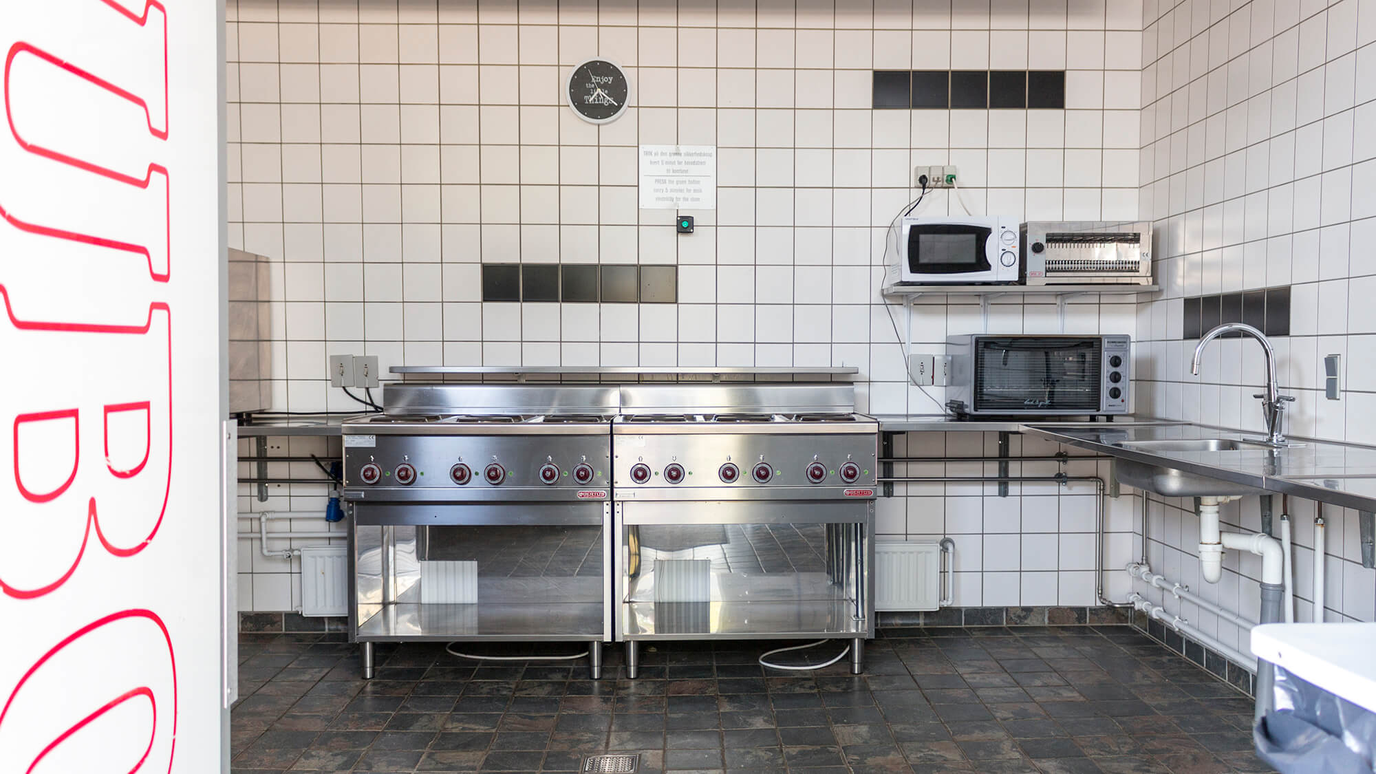 In our kitchen have have installed a professional catering stove with 12 plates, toasters, stoves and microwave ovens that you can use for free.